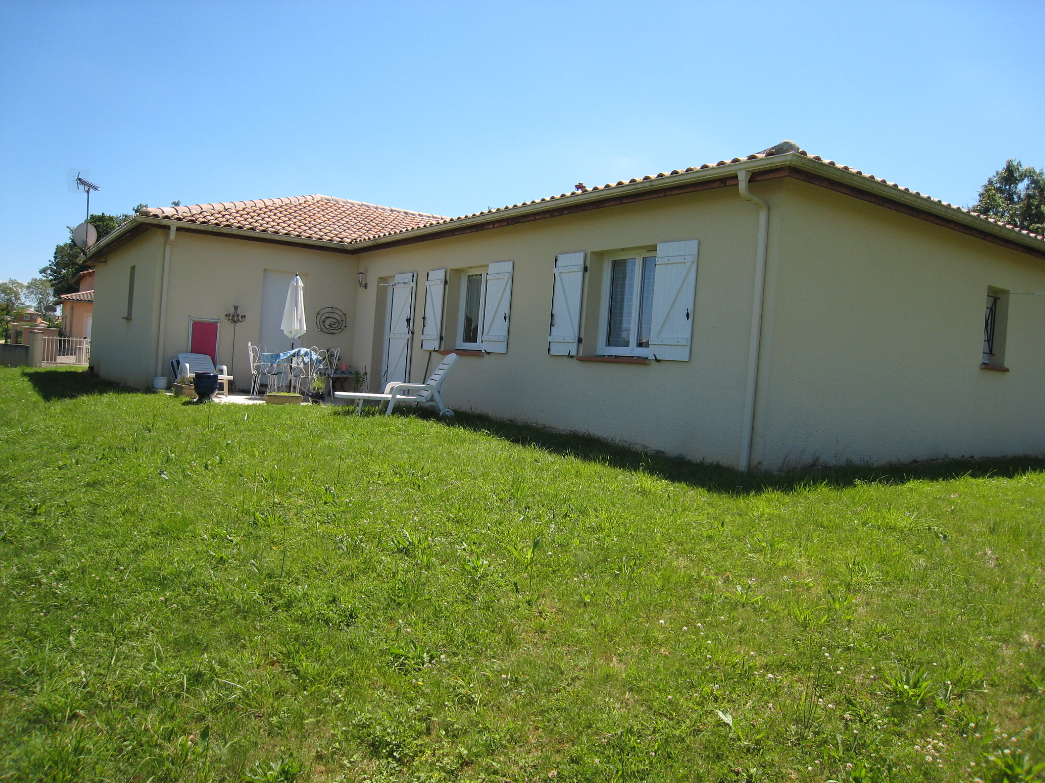 CASTERA VERDUZAN, dans un lotissement calme proche des commerces, belle villa de plain pied d'une superficie de 115 m² construite en 2007 comprenant séjour spacieux 40 m² donnant sur un terrasse, cuisine équipée ouverte sur le séjour, buanderie attenante à la cuisine, 4 belles chambres, salle de bains avec baignoire et douche, garage 31 m². Terrain clos 850 m². Chauffage électrique plus climatisation Libre le 20 décembre 2025. Loyer 900 € Dépôt de garantie : 900 € Honoraires de location 900 €